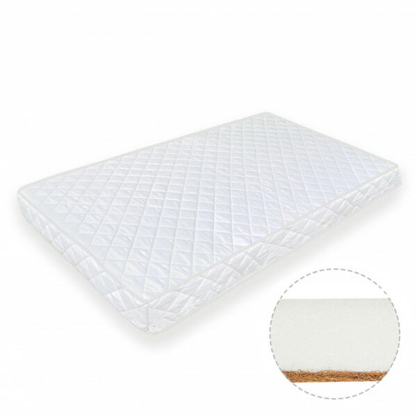 A kiságy elengedhetetlen kelléke a matrac! A Kókusz-hab Comfort matrac úgynevezett szendvics szerkezetű matrac A Comfort matrac lehetővé teszi a szabadválasztást a kétféle anyag használat miatt. Az egyik oldalán 1 cm vastag kókuszrost található, mely egy keményebb fekvőfelületet biztosít, a másik oldala 9 cm vastag habmatracból áll, amely egy puhább fekvő felületet biztos