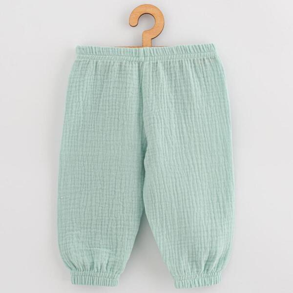 Fedezd fel a New Baby Feeling stílusos és praktikus muszlin gyerek nadrágját, amely modern dizájnjával minden kisgyermek ruhatárának tökéletes kiegészítője. A nadrág derékrészében és szárában elhelyezett gumiszalag gondoskodik a maximális kényelemről, így ideális választás a mindennapi viselethez. Ez a különleges muszlin anyag, amelynek lenyűgöző textúrája van, ne