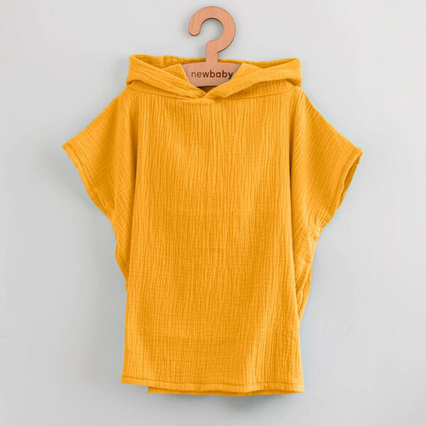 New Baby Feeling gyerek muszlin poncsó. Stílusos poncsó nemcsak otthoni használatra, hanem medencéhez és vízparti pancsoláshoz is. A muszlin poncsó anyagának köszönhetően pihekönnyű, szellős és nagyszerű nedvszívó. A poncsó megvédi a gyermeket a hidegtől, és puha törülközőként is használható. Laza, egyedi fazonjának és aranyos füleinek köszönhetően a gyerekek k