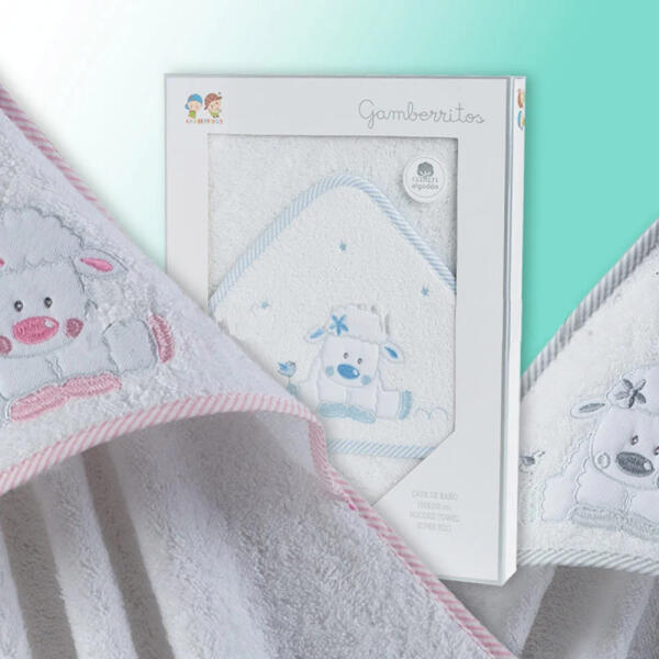 Leírás Kedves mintával ellátott Gamberritos kapucnis fürdőlepedő. 100x100 cm-es méretű. 100% pamut anyagú.