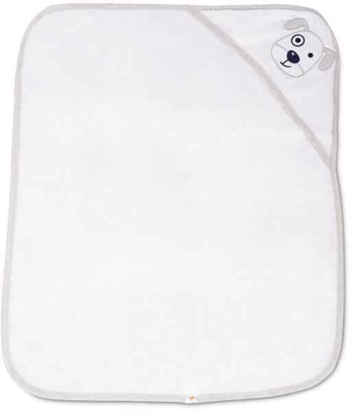 BALOO kapucnis törölköző/kifogó/kapucnis fürdetőlepedő kutyus mintás, 100% pamut frottír anyagból készült. Alapszíne fehér, szegélycsík színe Szürke.