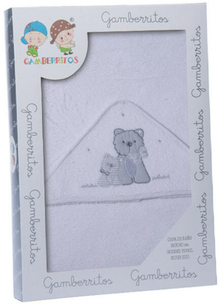 Kedves mintával ellátott Gamberritos kapucnis fürdőlepedő. 100x100 cm-es méretű. 100% pamut anyagú.