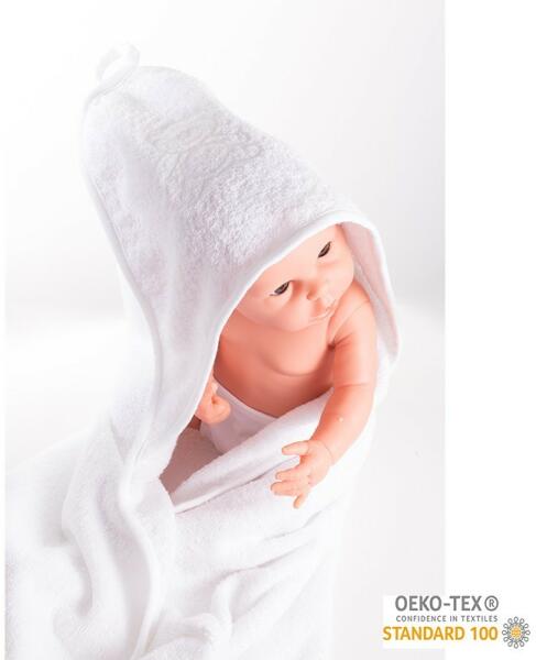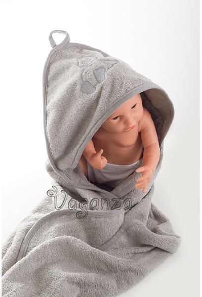 Aranyos baba frottír törölköző New Baby. Puha, kiváló minőségű és nagyon nedvszívó anyagból készült. Ideális kisbabák és idősebb gyermekek számára. A törölköző kapucnival rendelkezik, amely megvédi a baba fejét a hidegtől. A törölköző tökéletesen felszívja a nedvességet és nagyon gyorsan szárad. 2 rétegű anyagból készült. Anyaga: 100% pamut. Méretek: 80