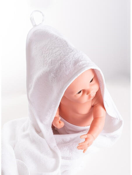 Törülköző - a kisgyermek becsavarására szolgál fürdés után. Kialakításának köszönhetően nem gátolja a gyermeket a mozgásban. A bevarrott kapucni védelmet nyújt a kisgyermek nedves fejecskéjének a megfázás elől. A törülköző tökéletesen magába szívja a nedvességet és melegen tartja a kisgyermeket. 84% pamutból és 16% poliészterből kifejlesztett. Fontos! A term