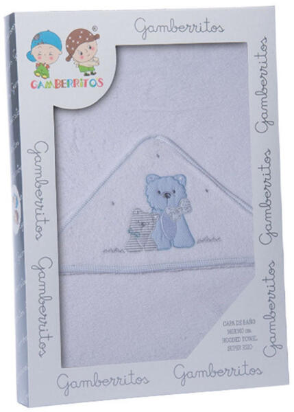 Leírás Kedves mintával ellátott Gamberritos kapucnis fürdőlepedő. 100x100 cm-es méretű. 100% pamut anyagú.