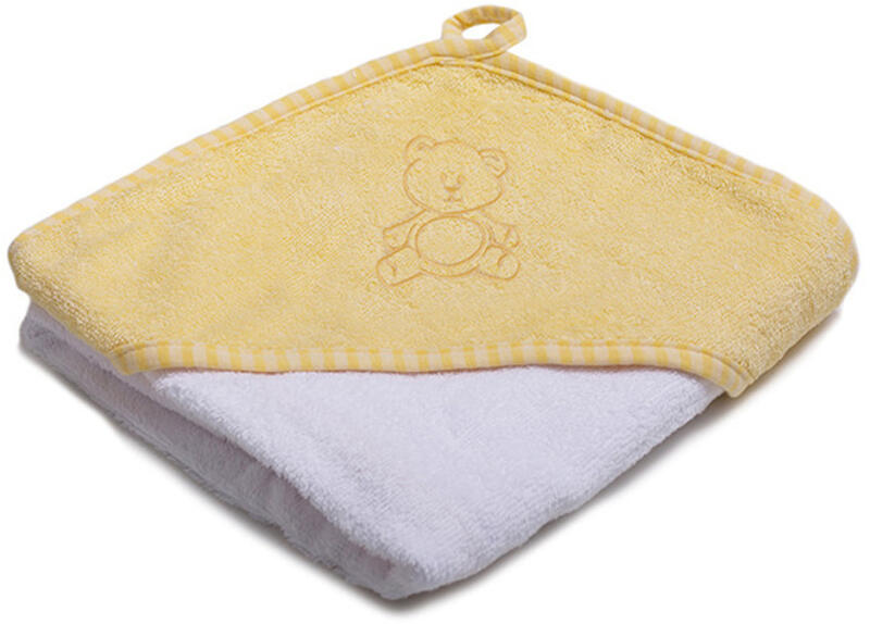 Aranyos baba frottír törölköző New Baby. Puha, kiváló minőségű és nagyon nedvszívó anyagból készült. Ideális kisbabák és idősebb gyermekek számára. A törölköző kapucnival rendelkezik, amely megvédi a baba fejét a hidegtől. A törölköző tökéletesen felszívja a nedvességet és nagyon gyorsan szárad. 2 rétegű anyagból készült. Anyaga: 100% pamut. Méretek: 80