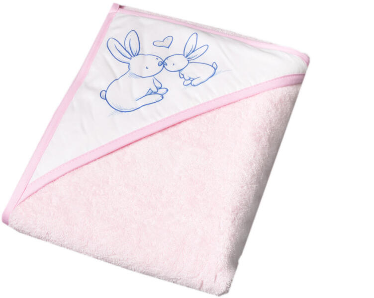 Tega kapucnis kifogó Nyuszi 100x100 Anyaga: 100% kiváló minőségű pamutból készült Jellemzők: Jó vízfelszívó képesség: Kiválóan felszívja a vizet, így gyorsan és hatékonyan szárítja a gyermeket. Védelem a hideg ellen: Melegen tartja a csecsemőt fürdés után, megóvva őt a megfázástól. Kapucni: A kapucni védelmet nyújt a baba fejének, és segít annak megszárítá