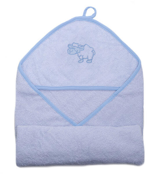 baba fürdőlepedő 100%-os pamut frottír anyagú A kapucni puha pamutvelúr anyagból készült, hímzett. 100 %-ban öko-textil anyagú Ajándékdobozos csomagolás Méretek: 90*90*90