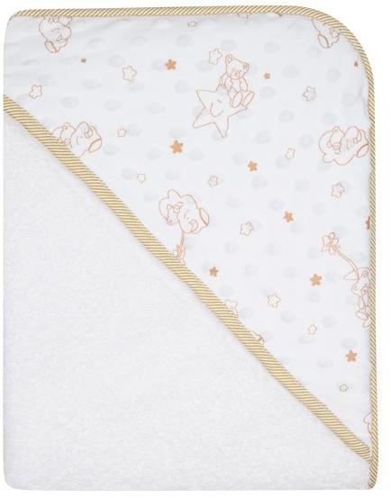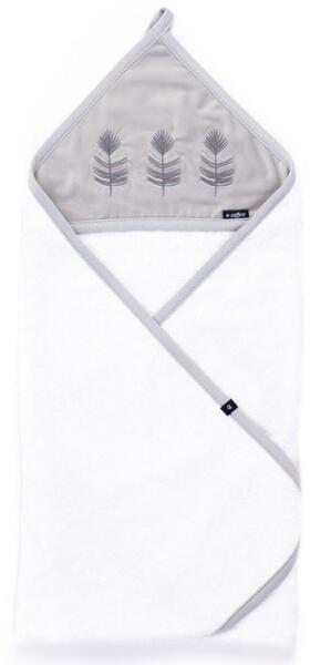 Baba kétrétegű pamut törölköző kapucnival és hímzett tollal díszitve. A minőségi törölköző különösen puha és kényelmes anyagból készült, amely tökéletesen melegíti a baba testét fürdés után. Kiváló nedvszívó képességgel rendelkezik. Nem csak otthon, hanem az úszómedencében vagy a vakáción használható. Mérete 100x100 cm. Anyaga: törölköző 100% pamut,