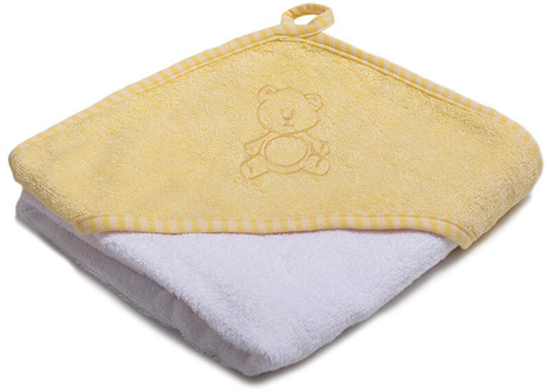 Törülköző - a kisgyermek becsavarására szolgál fürdés után. Kialakításának köszönhetően nem gátolja a gyermeket a mozgásban. A bevarrott kapucni védelmet nyújt a kisgyermek nedves fejecskéjének a megfázás elől. A törülköző tökéletesen magába szívja a nedvességet és melegen tartja a kisgyermeket. 84% pamutból és 16% poliészterből kifejlesztett. Fontos! A term