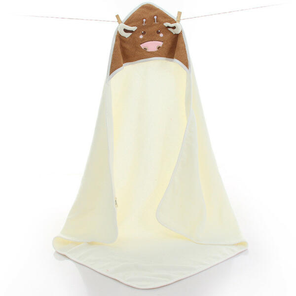 Finom pamutból készült kapucnis törölköző babáknak. A kapucni egy bocifejet formáz, a babák örömére. Kiváló nedvszívó képességgel rendelkezik, anyaga 100% pamut. Kapucnis baba pamuttörölköző - bocis, fehér