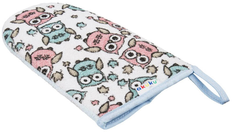 Gyermek frottír mosdókesztyű Akuku vidám képekkel fiúknak. Praktikus füllel felakasztható. Mérete: kb 21x12 cm. Anyaga:82% pamut, 18% poliészter.