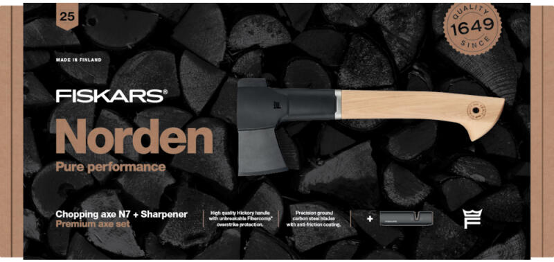 Fiskars Norden kemping fejsze N7 élezővel Két részes összeállítás, díszdobozban. Tökéletes általános fejsze bármely ház körüli munkákhoz, úgymint tűzifa aprításához, ácsmunkákhoz vagy építkezésekhez. Ideális egykezes használatra. 25 év garancia csak a termék internetes regisztrációja esetén érvényes, amelyet a vásárlástól számított harminc (30) napon bel