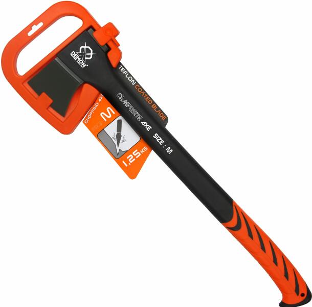 Hasítófejsze Demon 1250 g DEMON® hasítófejsze új tervezésú nyéllel és Thermoplastic felületkezeléssel, ami biztosítja a biztonságos fogást. A fogantyú profilos vége megakadályozza a véletlen megcsúszást. Az új modell súly és hossz szempontjából tökéletesen ki van egyensúlyozva. A szénacél fejsze éle teflonréteggel rendelkezik, amely akár 20% -kal csökkenti a súr