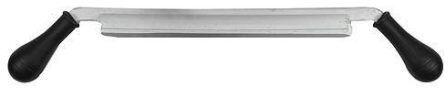 anyaga kovácsoltvas (gépi mángorolt) felület porfestett élkiképzés egyenes markolat műanyag, 45°-ban döntött munkaszélesség 250mm súly 0,8kg EAN 8585023347483 kiszerelés többszörhasználatos élvédővel