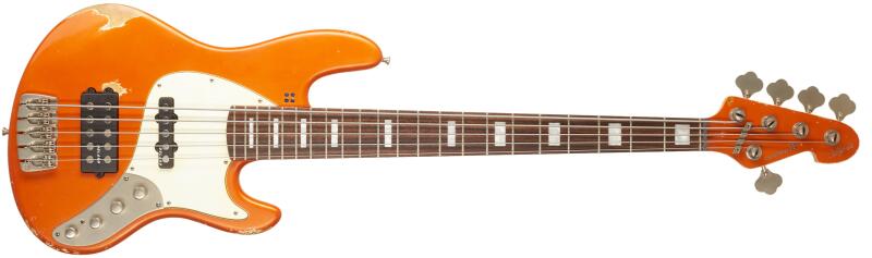 Gyártó színe: Orange Metallic, Szín: Narancssárga, Felületi javítás: Heavy Relic, Típus: JB, Húrok száma: 5, Test: Égerfa, Top: Nem tartalmaz, Nyak: Juharfa, Nyak profil: Gyártó nincs feltüntetve, Menzúra: 864 mm, Radiusz: 14 ", Érintők száma: 22, Nullás hurláb szélessége: 45 mm, Fogólap: Paliszander, Elektronika: Aktív, Hangszedők konfigurálása: H-S, Érzékelő model: