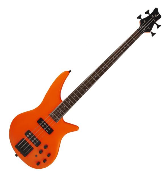 Jackson X Series basszusgitár. Test: nyárfa Nyak: juhar Menzúra: 34" (86.36 cm) Fogólap: babér Bundok: 24 Jumbo Híd: Jackson HiMass Hangszedők: 2x Jackson Medium-Output Humbucking Elektronika: Hangerő (push / pull választó aktív / passzív opciókhoz), Blend, 3-sávos EQ (csak aktív) Szín: Neon Orange