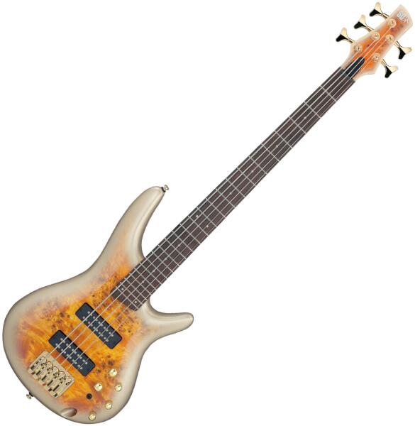 Ibanez SR2605L-CBB Premium 5 húros balkezes elektromos basszusgitár Test: Csomós Nyárfa top/Mahagóni test Nyak: Atlas-5 15-darabból illesztet Panga Panga /Juhar/Paduak/Amarant/Dió nyak KTS TITANIUM pálcával Menzúra: 864mm/34" Rádiusz: 305mm Fogólap: Panga Panga Bund: 24 Medium Hangszedő: Nordstrand Big Single híd, nyak pickup (passzív) Elektronika: 1 hangerő, 1 balansz potméter, 3