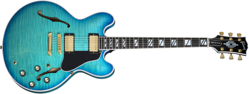 Gibson Supreme Series // Gyári kemény tokkal! Type: Hollowbody Body: Maple Top: AAA Flamed maple Set-in neck: Mahogany Fingerboard: Ebony Mother of Pearl split fingerboard inlays Scale: 629 mm (24.75") Nut width: 43 mm (1.695") Graph Tech nut Neck profile: Slim Taper Contoured neck heel 22 Frets Pickup: 1 Burstbucker Pro (bridge) and 1 Burstbucker Pro + (neck) humbucker 2 Volume controls with pu
