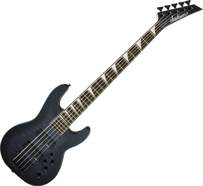 Jackson JS Series Concert Bass JS3VQ 5-húros elektromos basszusgitár, Transparent Black Burst színben Széria: JS Test: Nyárfa test, juhar fedlap Nyak: Juhar Menzúra: 35" (889 mm) Rádiusz: 12"-16" (304.8 mm - 406.4 mm) Fogólap: Amaranth Bund: 24, Jumbo Hangszedő: Jackson® Covered High-Output Humbucking (híd), Jackson® Covered High-Output Humbucking (nyak) hangszedők Elektronika: 2 hang