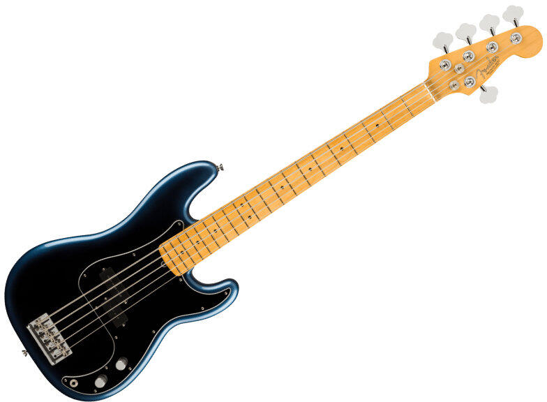 Prémium minőségű 5 húros basszusgitár, tartozék gyári keménytokkal. Test: Éger Testforma: Precision Bass Nyak: Juhar, "1963 C" profil Menzúra: 34" (864 mm) Rádiusz: 9.5" (241 mm) Fogólap: Juhar Bund: 20, Narrow Tall Hangszedő: V-Mod II Split Single-Coil Precision Bass (közép) Elektronika: fő hangerőszabályzó, fő hangszínszabályzó Szín: 3-Color Sunburst Tartozék: gyári ke