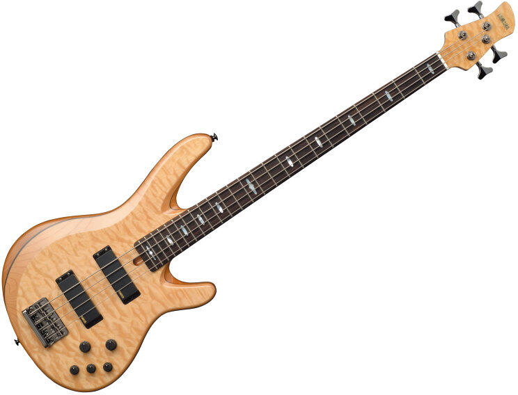 Yamaha TRB1004J elektromos basszusgitár, Natural színben Test: Juhar/éger, kagylós juhar fedlap Nyak: 5-részből illesztett juhar/mahagóni Menzúra: 35" (889.0mm) Rádiusz: 10" (250 mm) Fogólap: Rózsafa Bund: 24, Medium Hangszedő: Humcanceled Single Coil / Alnico V (híd), Humcanceled Single Coil / Alnico V (nyak) hangszedők Elektronika: Hangerő, balance, 3-sávos EQ (Bass, Middle, Treb