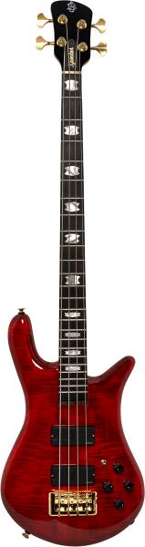 Spector Rudy Sarzo signature basszusgitár Left-/Right-handed:Right-handed Body Shape:Rudy Sarzo Euro 4 LT Body Material:Chambered Empresswood with Figured Maple Body Finish:High Gloss Color:Scarlett Red Neck Material:3-Piece Maple Neck Shape:C Radius:16" Fingerboard Material:Ebony Fingerboard Inlay:Mother-of-Pearl Crowns Number of Frets:24, Medium Jumbo Scale Length:34" Nut Width:1.64" Nut Materi