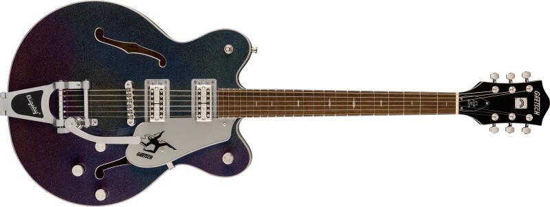 John Gourley (Portugal. The Man) Signature Model Limited Edition Style: Semi-hollow with double cutaway Body: Maple Top: arched maple laminated Neck: Maple Fingerboard: Laurel Pearloid Clouds fingerboard inlays Neck profile: Thin "U" Fingerboard radius: 305 mm (12") Scale: 625 mm (24.6") Nut width: 42.86 mm (1.6875'') Nut: Graph Tech NuBone 22 Medium jumbo frets Pickups: 2 USA Full'Tron humbuckers