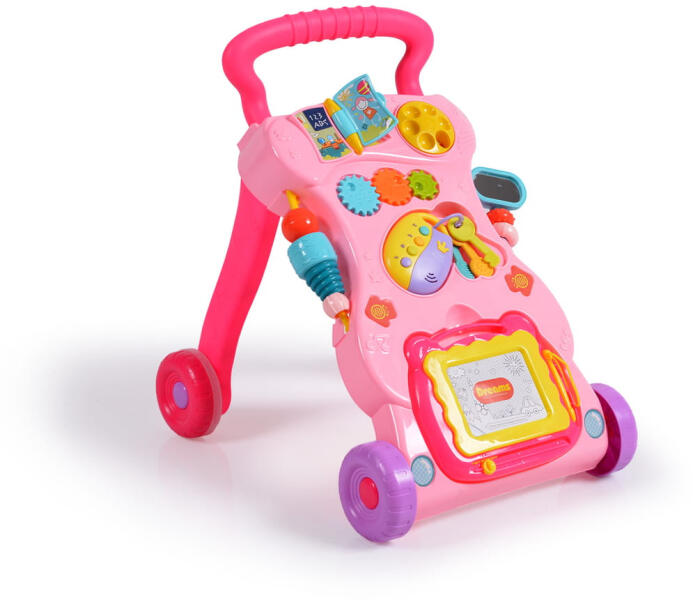 Termék részletekA DREAMS járássegítő műanyag 2in1 PINK tökéletes választás a kisgyermekek számára. Ez a rózsaszín színű játék nem csak szórakoztat, hanem segít a gyermek motorikus fejlődésében is, mivel támogatja őket az első lépések megtételében. A Moni Toys által gyártott járássegítő kettős funkciót lát el, hiszen a járássegítőn kívül játékként is használható. A