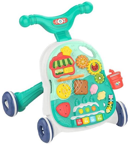 A gyerekeknek időnként nem árt egy kis segítség. Ez az átalakítható járássegítő megkönnyíti számukra az első lépéseket, majd ha elfáradtak a nagy mozgásban, a foglalkoztató asztalnál játszhatnak egy kicsit. A foglalkoztató asztal a picik számos készségét fejleszti. Beledobhatják a golyókat a kosárba, akár zenét is komponálhatnak 4 különböző hangból, találnak