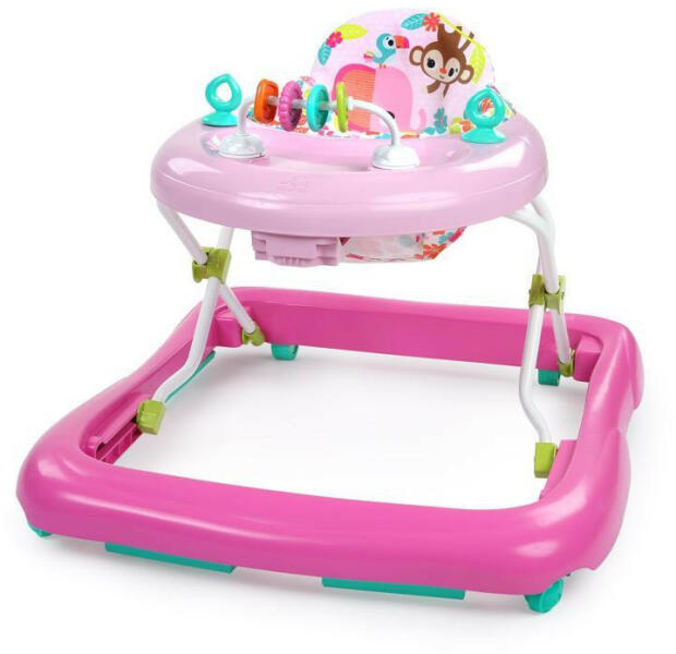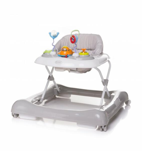 Tulajdonságai: Életkor: 6 - 12 hó Testsúly: max 12 kg-ig Az ülőrész 3 magassági pozícióba állítható: alkalmazkodik a gyermek méretéhez, hogy a lába elérje a földet Zenés játéktálca: játékok, fények és dallamok. A zene elindul a játéktálcán lévő gombok megnyomásával. Elemigény a zenélő játéktálcához: 2 db 1,5 V-os AA alkáli elem (nem tartozék) A 4-kerekű