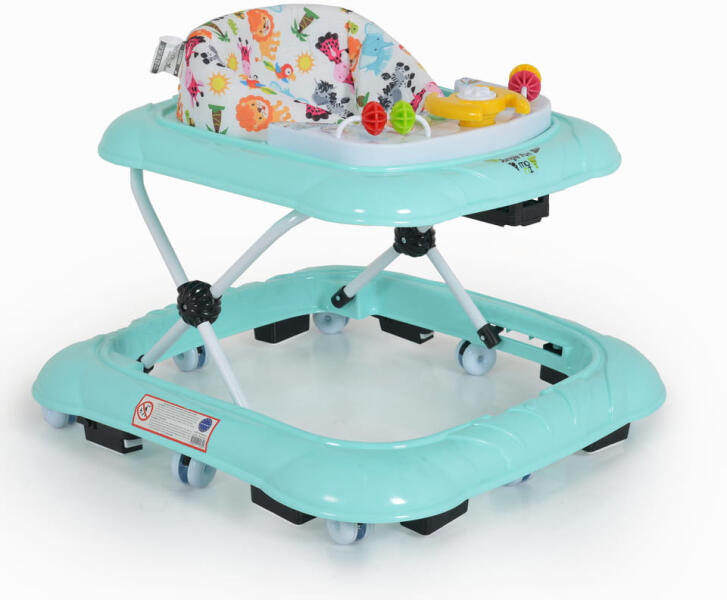 CHICCO Walker Walky Talky Green Wave 6m+, 12 kg-ig A gyermekorvosok által ajánlott, állítható magasságú kiságy biztosítja a baba lábai és a padló közötti megfelelő érintkezést. állítható magasságú ülés (3 pozícióban)- elülső forgó kerekek a könnyebb mozgás érdekében- fékező fékező az európai biztonsági szabványoknak megfelelően- játéktevékenységi panel