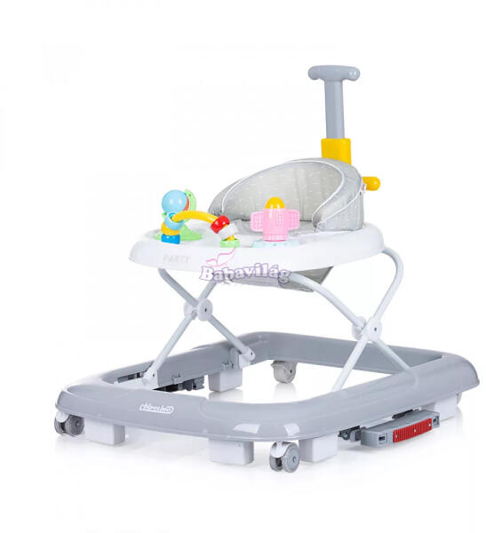 Termék részletekTulajdonságai: Életkor: 6 - 12 hó Testsúly: max 12 kg-ig Az ülőrész 3 magassági pozícióba állítható: alkalmazkodik a gyermek méretéhez, hogy a lába elérje a földet Zenés játéktálca: játékok, fények és dallamok. A zene elindul a játéktálcán lévő gombok megnyomásával. Elemigény a zenélő játéktálcához: 2 db 1,5 V-os AA alkáli elem (nem tartozék) A 4-kerekű
