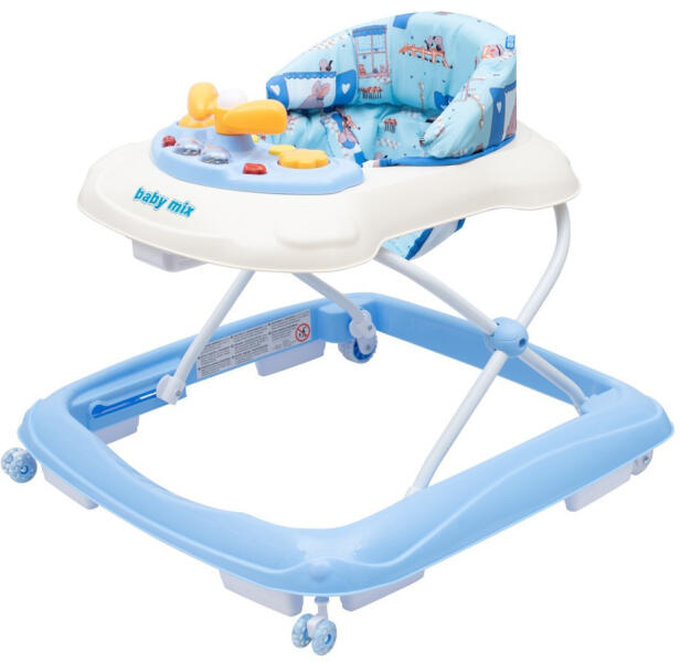 Multimédiás bébikomp Baby Mix szilikon kerekekkel. A bébikomp kényelmes, ergonomikus alakú üléssel van felszerelve, amely biztosítja a gerinc helyes tartását. A játék pult különféle fényekkel, forgatható dudáló kormánykerékkel és dallamok lejátszására szolgáló gombokkal rendelkezik. A gyönyörű játékokkal ellátott bébikomp sok szórakozást nyújt a gyermekek szá