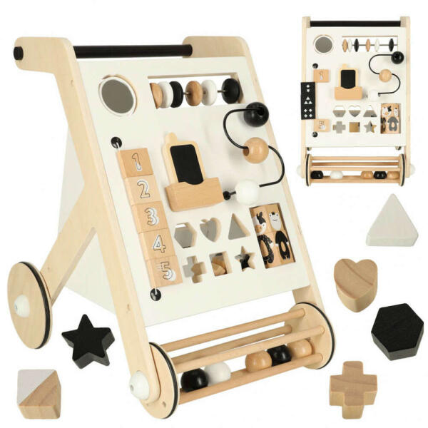 Termék részletekFából készült tologató interaktív táblával - szortírozó, csúszó blokkok, megfordítható táblák. A szórakozás és a tanulás kombinációja! A szortírozó-toló megkönnyíti a járás tanulását és rengeteg kreatív szórakozást nyújt. Életkor: 12m+. A járókeret méretei: 32 cm x 49 cm x 34 cm. OKTATÁSI FA TOLÓ JÁRÓKERET SZORTÍROZÓVALEgy kisgyermek első lépései, a