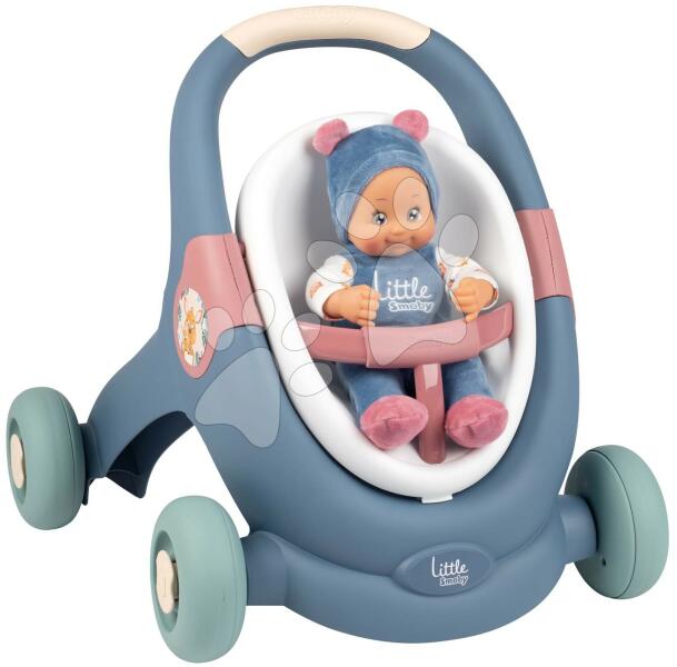 Járássegítő és babakocsi játékbabának Baby Walker 3in1 a francia Smoby vállalat Little Smoby kollekciójából kiváló ajándék minden gyerkőc részére már 12 hónapos kortól, akik imádnak babázni. Többfunkciós gyerekjáték pasztell kék színben pompázik, tökéletes társ első léptek megtételéhez. A járássegítőre való támaszkodással a kicsik magabiztosabban kezden