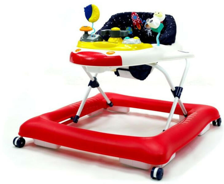 Termék részletekÉletkor: 6 - 12 hó. Testsúly: max 12 kg-ig. Ez a bébikomp a rajta lévő játékokkal a világűrbe varázsolja a babát!· Állítható magasság 3 pozíció · Játéktálca különböző tevékenységekkel · 5 dallam · 8 ütközőfék a biztonságosabb használat érdekében · 4 minden irányba forduló szilikon kerék · Levehető és mosható kerekek · Kompakt összehajtós összecsuk