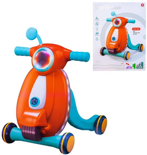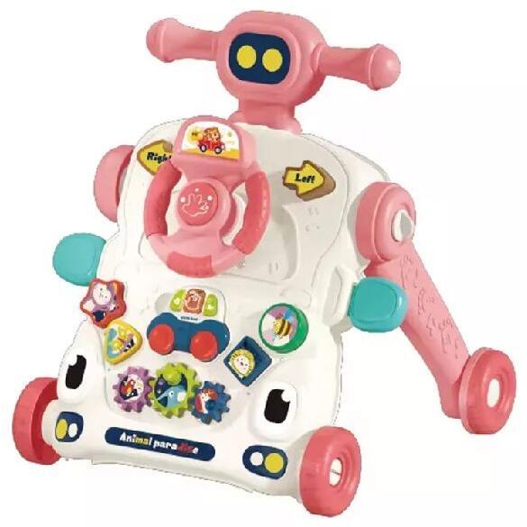 Termék részletek- Az elődnek 4 kereke van csúszásmentes gumiszalaggal, 3 lábon támasztékkal, állítható utazási sebességgel, játékpanel csörgő golyókkal, tál petárda hangokkal, műanyag tükör szilikon támogatással, gombok a hangerő beállításához vagy a kioldó fényekhez, gyermekdalok, különböző járművek hangjai. - Az előfutár műanyagból készül. - A fények és hangok funkci