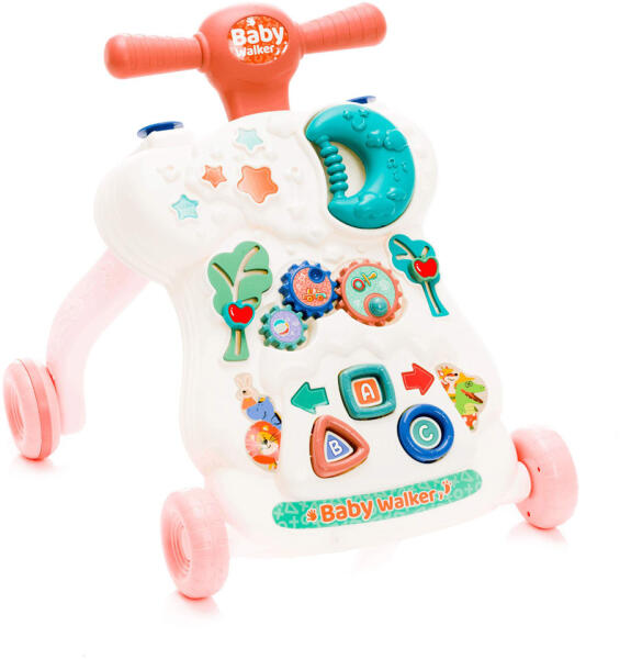 Termék részletekEz a járássegítő ideális választás a járni tanuló kisgyermekek számára. Segít megtartani a járáshoz szükséges egyensúlyt, valamint foglalkoztató asztallá alakítható, így szórakoztató tevékenységekkel fejleszti a finommotorikus készségeket. A termék jellemzői:- 3 az 1-ben funkció: matatófal, foglalkoztató asztal és járássegítő- Állítható sebességű kerekek-