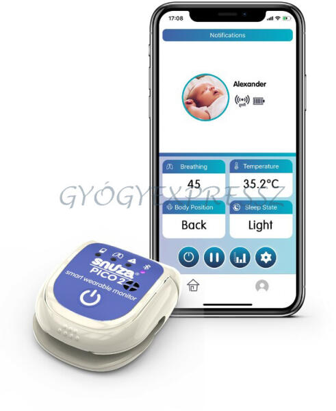 A készüléket a szülő a gyermek pelenkájára rögzíti egy rendkívül erős, és rugalmas övcsipesz segítségével, mely a gyermek légző-mozgását a gyermek hasán érzékeli és melynek 15 mp kimaradása esetén finoman rezeg. 20mp-es levegővétel kimaradása után hangos figyelmeztetéssel jelez a szülőnek. A SNUZA PICO 2 babafigyelő bluetooth jelátvitellel csatlakoztatható okos