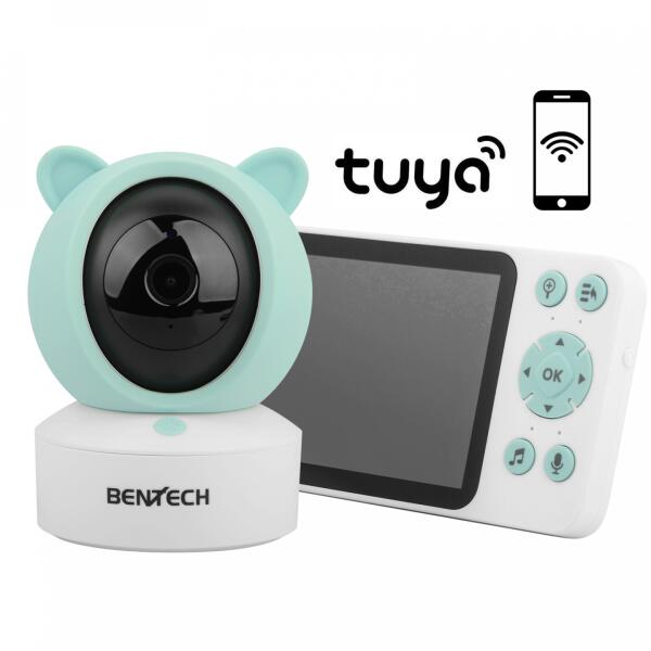Techsuit - Baby WIFI Camera (Q15A) - 1080P, PTZ, Remote Control, Lullabies, Infrared, Temperature Alarm, Tuya App - White