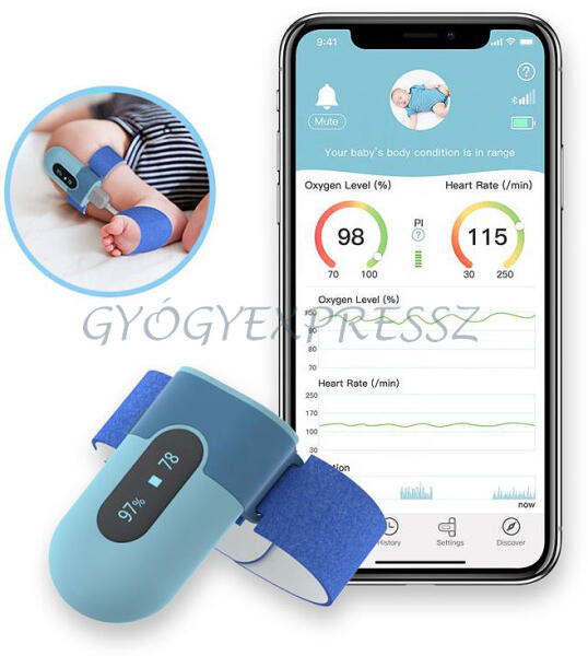 véroxigénszint/pulzust mérő készülék és mozgás érzékelő mért értékek: véroxigénszint, pulzus, mozgás/aktivitás adattovábbítás: Bluetooth LED kijelző memória tárhelye: 40 óra vezérlés: manuális és applikáció segítségével applikáció nyelve: angol visszajelzést ad: igen, diagrammot készít kinek ajánlott?: 0-3 éves korig töltése: adatátviteli kábel - líti