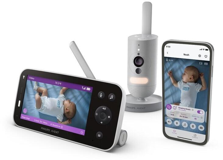 A láthatatlan láthatóvá tétele a teljes bizonyosság érdekében. Érintésmentes alvás- és légzésfigyelés a SenseIQ hordozható eszközzel. Ismerkedjen meg a Philips Avent Premium csatlakoztatott bébiőrrel. Azonnal megtudhatja gyermeke alvási állapotát és légzési gyakoriságát a SenseIQ eszköz segítségével. Kövesse gyermekét az 5" szülői egységen vagy a Baby Monitor+ a
