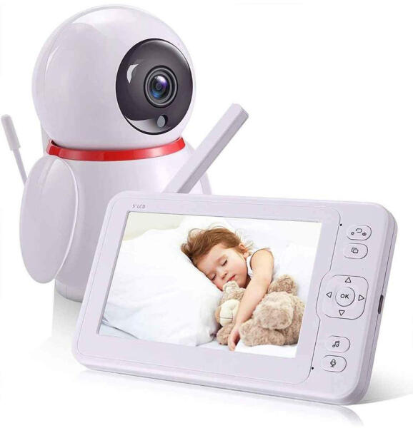 Babafigyelő monitor 5" LCD kijelzővel, 1080p éjjellátó kamerával 5 LCD 1080p Full HD videós babaőrző kamerával és hanggal Figyelje kicsinyét egy 5 hüvelykes nagyméretű, Crystal Clear HD képernyővel, 1080P felbontású kamerával. A monitor és a kamera közvetlenül csatlakozik egymáshoz, nagyon gyorsan és egyszerűen beállítható, és semmilyen adat nem kerül fel az internet