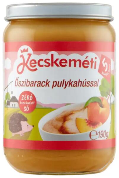 Kecskeméti bébiétel őszibarack pulykahússal 5 hónapos kortól 190g Hivatalos magyarországi forgalmazótól. Leírás: Őszibarack pulykahússal Kecskeméti menü 5 hónapos kortól, mely komplett főétkezést biztosít a baba számára. Ezek a menük fedezik a baba megnövekedett fehérjeszükségletét, biztosítják a vérképzéshez nélkülözhetetlen vasat. A csecsemők fejlődése a