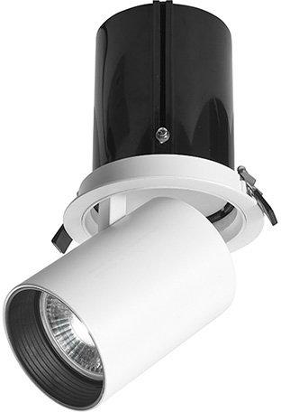 Fehér színű, alumíniumból készült, állítható fejű beépíthető lámpa, jól variálható, így szinte bármilyen stílusú környezetben alkalmazható. A lámpa 3000K-es, meleg fehér fényű, nem cserélhető, beépített LED fényforrással működik, ezért rendkívül energiahatékony. A lámpa feje 0-90 fokig mozgatható, fényszöge 24, 36 vagy 60 fokos szögbe állítható. Traf