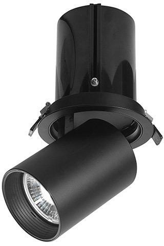 Fekete színű, alumíniumból készült, állítható fejű beépíthető lámpa, jól variálható, így szinte bármilyen stílusú környezetben alkalmazható. A lámpa meleg fehér fényű, nem cserélhető, beépített LED fényforrással működik, ezért rendkívül energiahatékony. A lámpa feje 0-90 fokig mozgatható, fényszöge 24, 36 vagy 60 fokos szögbe állítható. Trafóval üze