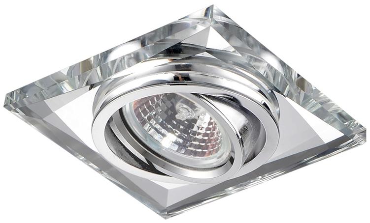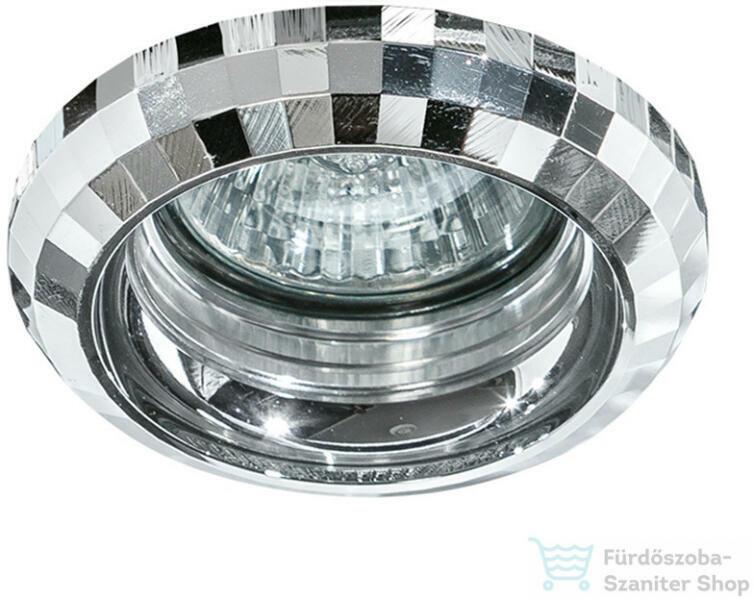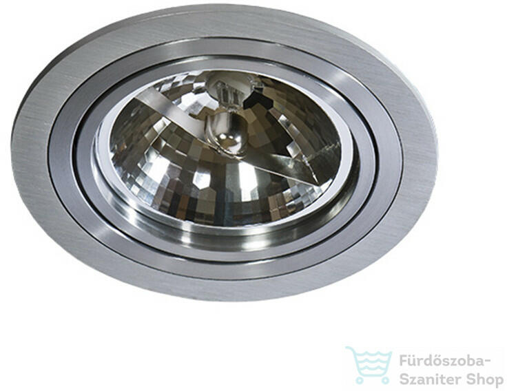 Króm színű fém mennyezetbe építhető lámpa.