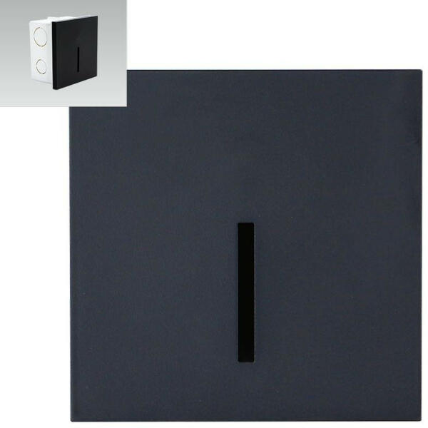 Fekete színű műanyag vázas falba építhető lámpa természetes fehér színhőmérsékletű beépített LED fényforrással.