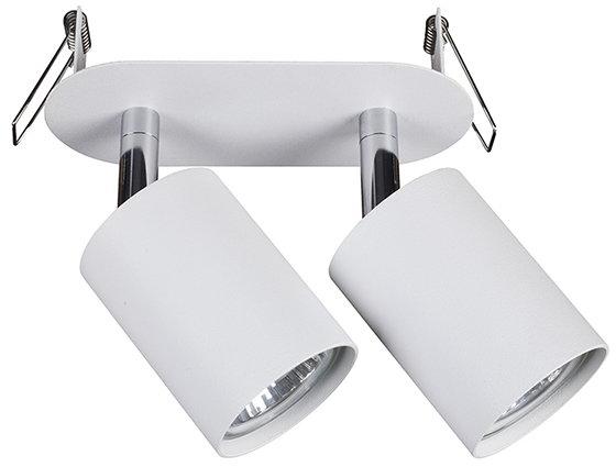 "Fehér festett fém beépíthető spot lámpa, melynek feje billenthető, forgatható. Lámpafej magassága 9,6 cm, átmérője 5,5 cm. Gipszkartonba süllyeszthető spot lámpa. Kivágási mérete: 11,5 x 4,5 cm. A foglalatot tartalmazza a csomagolás, trafó nélkül működtethető. Milyen fényforrást ajánlunk a lámpához?A fényforrás nem tartozéka a csomagolásnak. Maximum 10W-os LED f